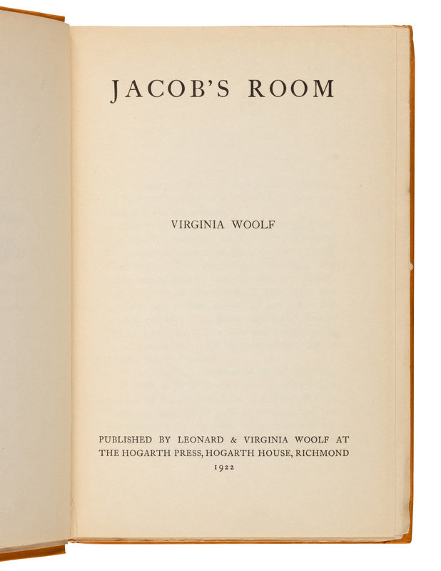 WOOLF, Virginia (1882-1941). Jacob's Room. Richmond: Leonard & Virginia Woolf at the Hogarth Press, 1922.