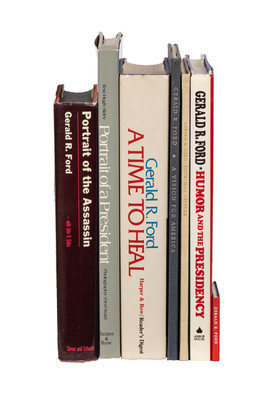 FORD, Gerald R. and John R. Stiles. Portrait of the Assassin. New York: Simon & Schuster, 1965. -- A Time to Heal: The Autobiography of Gerald R. Ford. [New York]: Harper & Row and The Reader's Digest Association, Inc., 1979. -- A Vision for America. Northridge, CA: Lord John Press, 1980. LIMITED EDITION, numbered 247 of 500 copies. -- Churchill Lecture: An Address by Gerald R. Ford at the English-Speaking Union London, England. Northridge, CA: Lord John Press, 1984. -- The Tenth Convention: A Speech by Gerald R. Ford to the Republican National Convention at New Orleans, Louisiana on August 16, 1988. Northridge, CA: Lord John Press, 1988. 64mo (66 x 51 mm). -- And 2 others. Together, 7 works in 7 volumes, various 4to and 8vo sizes, all FIRST EDITION, all SIGNED BY GERALD FORD, several with FORD'S SIGNATURE on a slip additionally laid in, condition generally fine. Complete list available upon request.