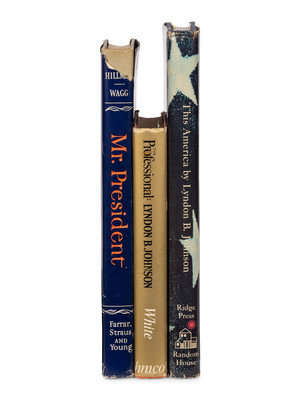 HILLMAN, William. Mr. President. New York: Farrar, Straus and Young, 1952. -- WHITE, William S. The Professional: Lyndon B. Johnson. Boston and Cambridge: Houghton Mifflin Company and The Riverside Press, 1964. -- JOHNSON, Lyndon B. This America. New York: Random House, 1966. -- Together, 3 works in 3 volumes, various 4to and 8vo sizes, all in original bindings, ALL FIRST EDITION, all SIGNED BY LYNDON B. JOHNSON, condition generally fine.