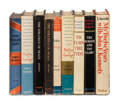Why England Slept. New York: Wilfred Funk, Inc., 1940. -- Profiles in Courage. New York: Harper & Brothers, 1955. Two additional copies: Young Readers Edition and Inaugural Edition, both 1961. -- The Strategy of Peace. New York: Harper & Brothers, 1960. -- To Turn the Tide. New York: Harper & Brothers, 1962. -- The Burden and the Glory. New York: Harper & Brothers, 1964. -- And 2 others. Together, 9 works in 9 volumes, 8vo, in original bindings, most FIRST EDITION condition generally fine. Complete list available upon request.