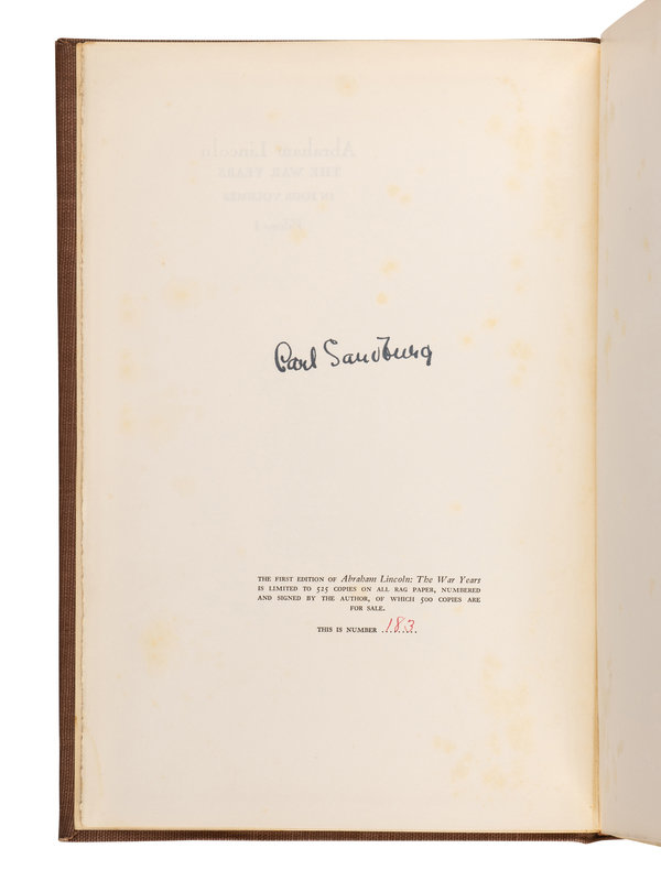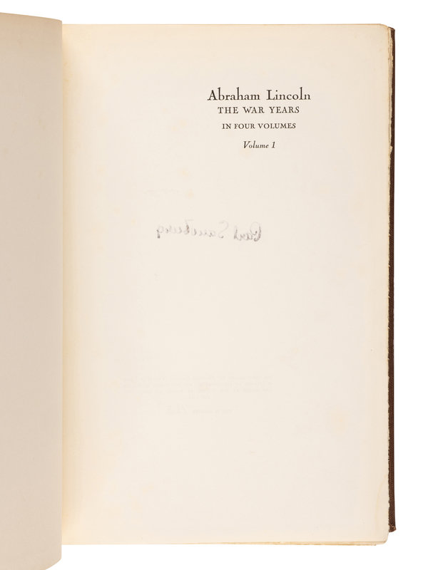 [LINCOLN, Abraham]. SANDBURG, Carl (1878-1967). Abraham Lincoln: The War Years. New York: Harcourt, Brace & Company, 1939.