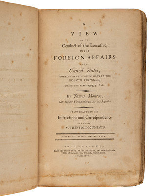 MONROE, James (1758-1831). A View of the Conduct of the Executive, in the Foreign Affairs of the United States... Philadelphia: Benj. Franklin Bache, 1797.