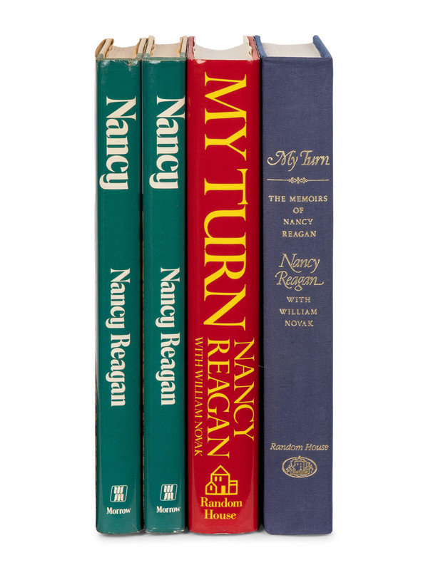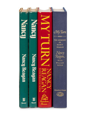 REAGAN, Nancy and Bill LIBBY (1927-1984). Nancy. New York: William Morrow and Company, Inc., 1980. -- Another copy. -- REAGAN, Nancy and William NOVAK (b. 1948). My Turn: The Memoirs of Nancy Regan. New York: Random House, 1989. LIMITED EDITION, numbered 263 of 300. – Another copy. FIRST TRADE EDITION. -- Together, 4 works in 4 volumes, 8vo, in original bindings, FIRST or LIMITED EDITIONS SIGNED BY NANCY REAGAN, condition generally fine.