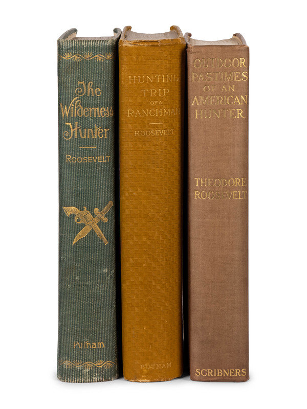 Hunting Trips of a Ranchman. New York and London: G.P. Putnam's Sons, 1886. -- The Wilderness Hunter. New York and London: G.P. Putnam's Sons, 1893. -- Outdoor Pastimes of an American Hunter. New York: Charles Scribner's Sons, 1905. -- Together, 3 works in 3 volumes, 8vo, in original bindings, ALL FIRST TRADE EDITIONS, condition generally fine.