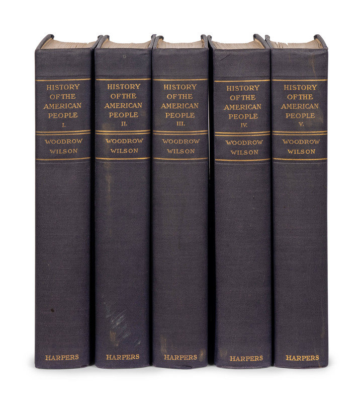 [With:] The State. Elements of Historical and Practical Politics. Boston: D.C. Heath & Co., 1889. -- George Washington. New York: Harper & Brothers, 1897. -- On Being Human. New York and London: Harper & Brothers, 1916. -- Why We Are at War. New York and London: Harper & Brothers, 1917. -- A History of the American People. New York: Harper & Brothers, 1906. 5 volumes. Later edition. -- And 2 others. Together, 7 works in 11 volumes, 8vo, in original bindings, most FIRST EDITIONS, condition generally fine.