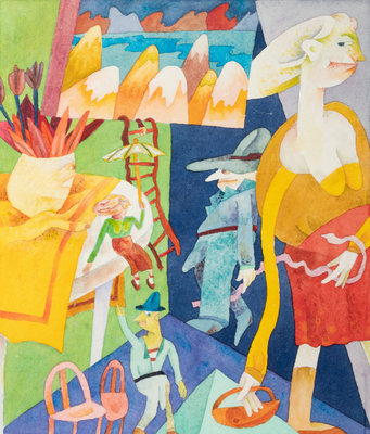 watercolor and gouache on paper