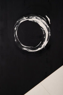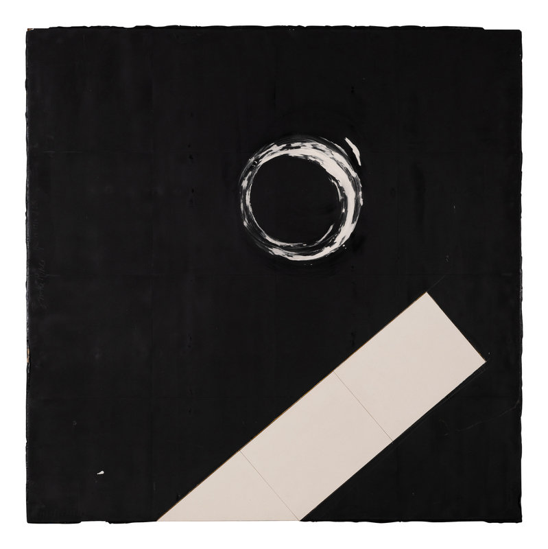 , 1981tar, oil paint and spackle on tile on masonite