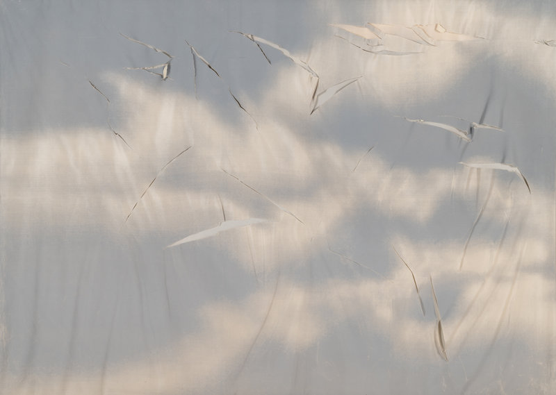 , 1975color screenprint on silk, double-layered and torn