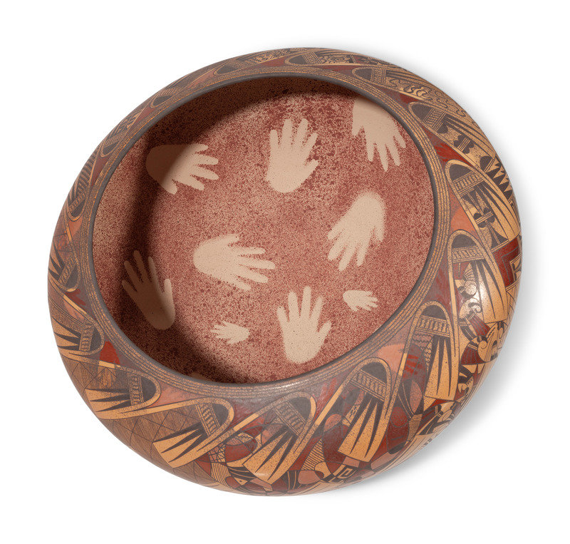 interior decorated with a rendition of Cueva de las Manos; repeating eagle wings detail exterior