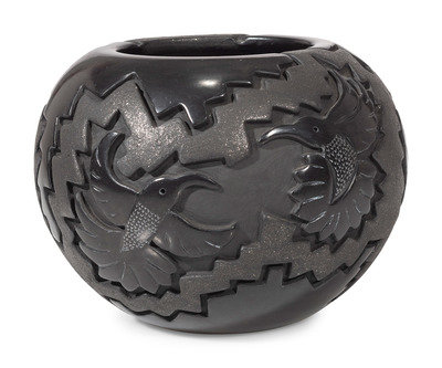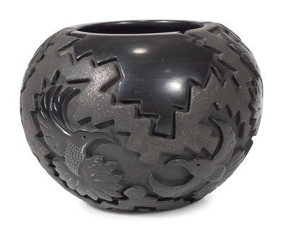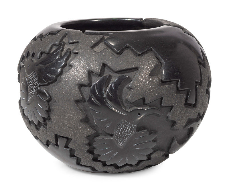 Carved Micaceous Blackware Bowl, with Hummingbirds