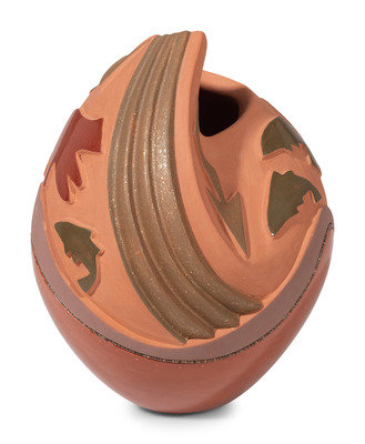 Red, Green, and Tan Pottery Vase