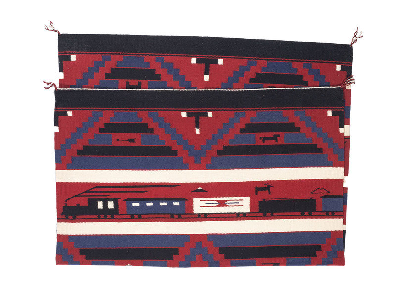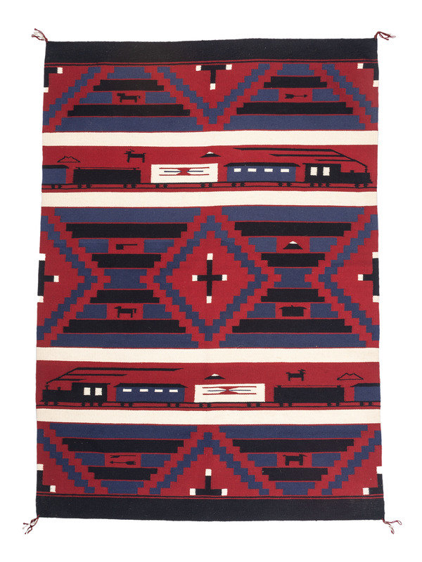 Navajo Revival Pictorial Weaving, with Trains
