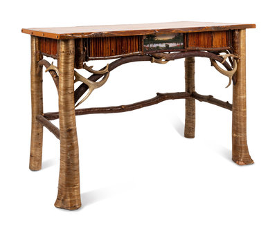 table height 30 x width 48 1/4 x depth 21 1/4 inches; front panel 3 3/4 x 10 inches