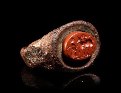 A Roman Iron and Red Jasper Finger Ring
