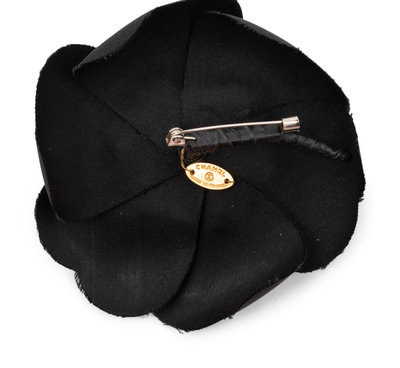 Black fabric camellia floral pin.