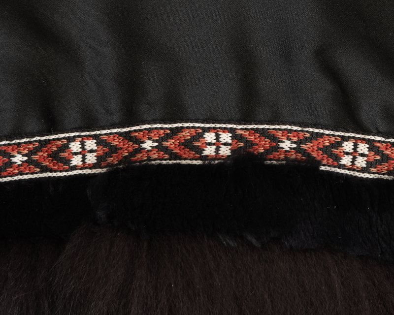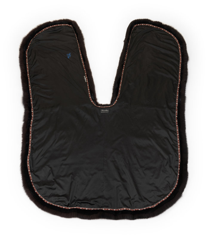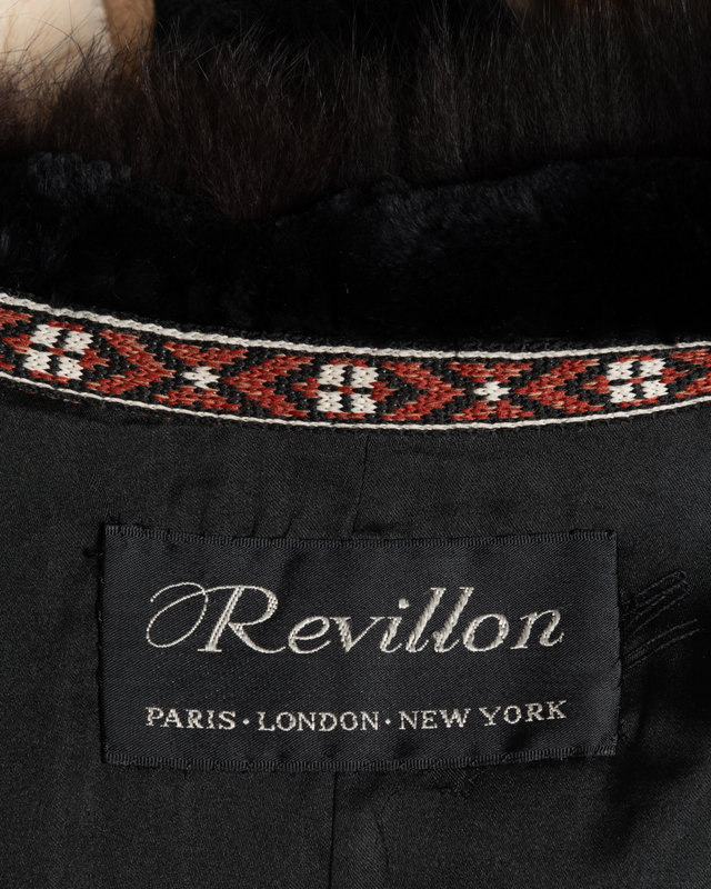 This Revillon cape features a design by Ford Ruthling (1933-2015), a Santa Fe artist, known as a ‘master in multiple mediums’; he worked in watercolor, tin, wood, clay, iron, paper and, in this rare version, fur. Ruthling was born in 1933 in Tesuque, New Mexico and became famous for his realistic detailed painted Pueblo pottery set within a surrealist background. In the 2016 book ‘Unbuttoned: Gay Life in the Santa Fe Arts Scene’, Ford Ruthling is described as, ‘a gay playboy and the leader of a great circle of likeminded artists and artistic types back in the 1970s’. Ruthling’s works are in the Smithsonian Institution in Washington, D.C., the Dallas Museum of Fine Art, and the New Mexico Museum of Art, as well as many private collections.