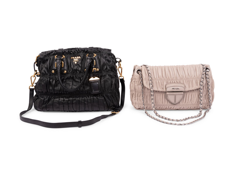 Nero gathered Gaufre Nappa tote leather bag with gold-tone hardware, an adjustable shoulder strap, an interior zipper pocket, a top zipper closure and two small open compartments.