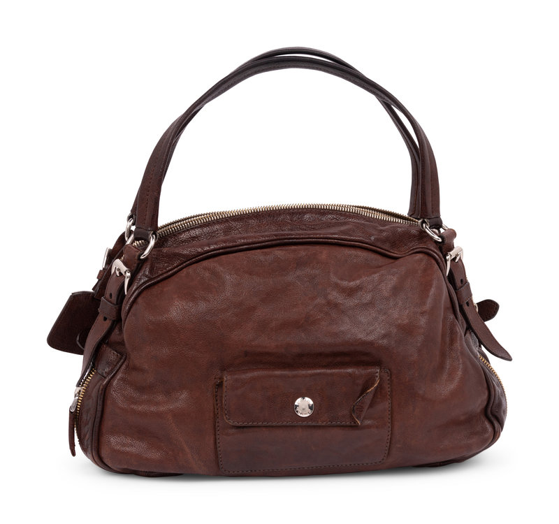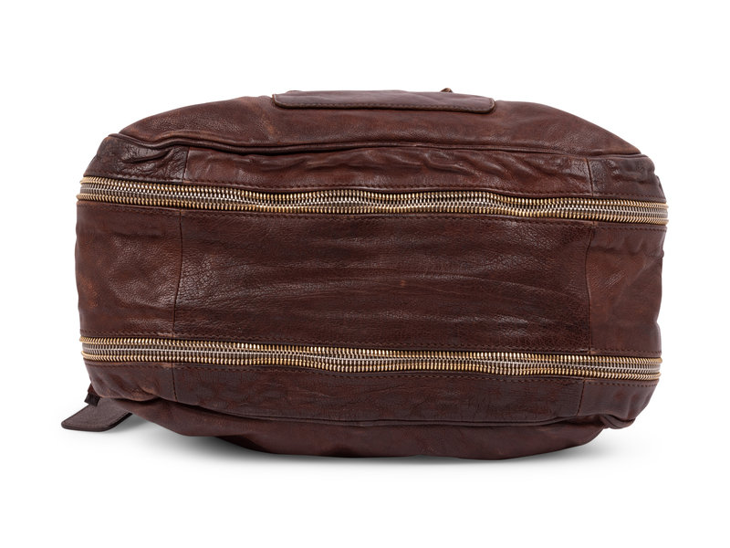 Coco leather Cervo Antik shoulder bag with two zippers going along the bottom, a back snap pocket and an interior zipper pocket.