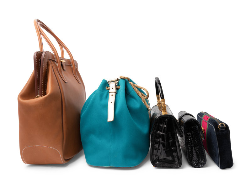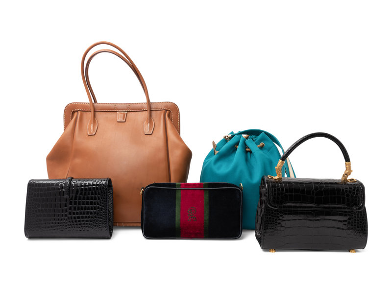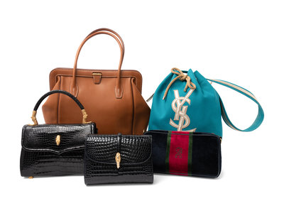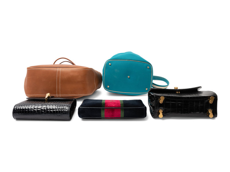 Five Designer Handbags: One Roberta di Camerino, One YSL, One Hermes, and Two Unlabeled Exotic Skin Bags