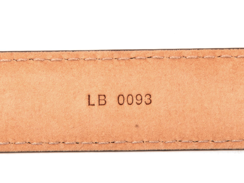 Louis Vuitton Damier canvas and leather backed belt with gold-tone metal prong buckle.
