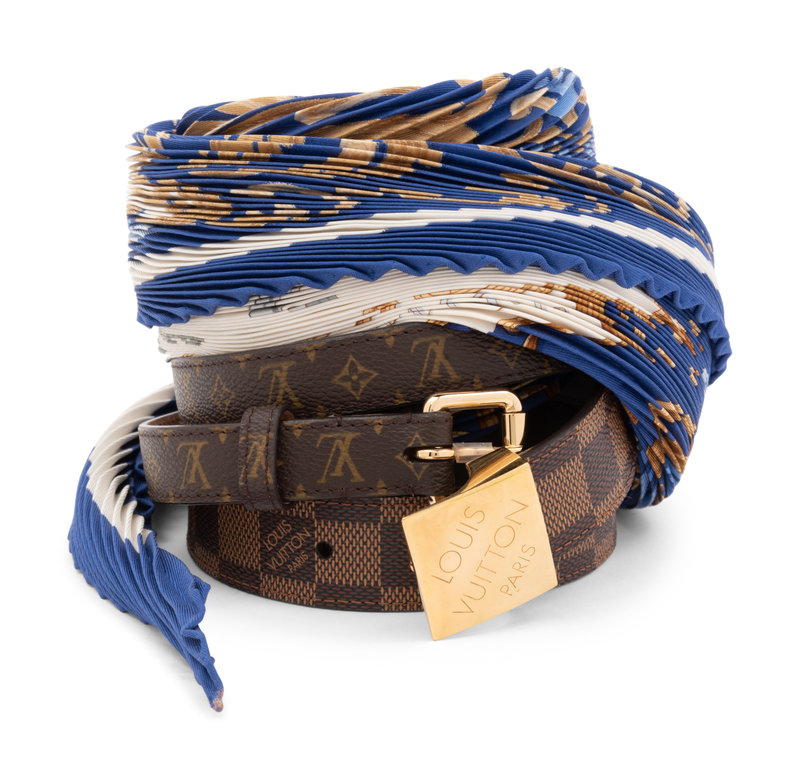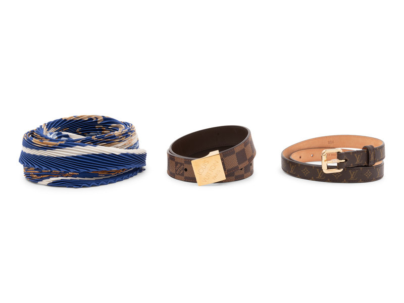 Two Louis Vuitton Belts and an Hermès Plisse Scarf