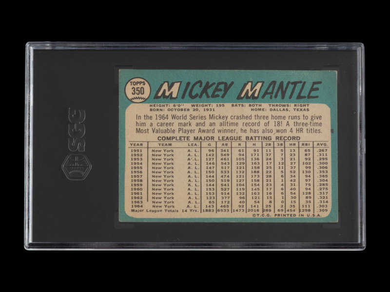 A 1965 Topps Mickey Mantle Baseball Card No. 350 (SGC 3 VG)