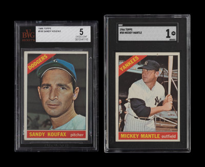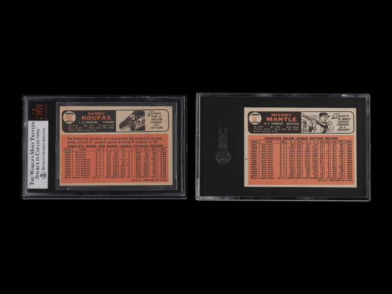 comprising Mickey Mantle No. 50 (SGC 1 PR) and Sandy Koufax No. 100 (BVG No. 5 EX).
