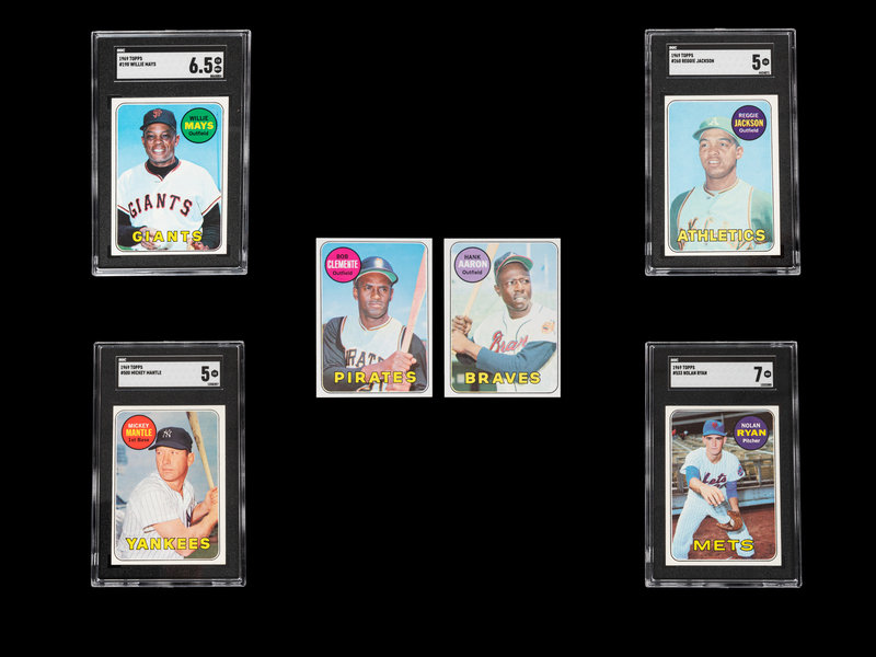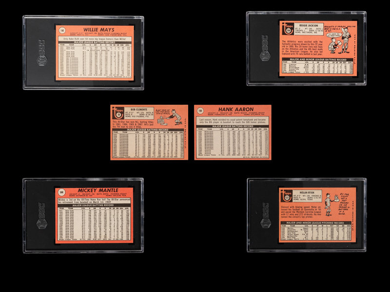 including the following SGC graded issues: Willie Mays No. 190 (SGC 6.5 EX-NM+), Reggie Jackson No. 26 (SGC 5 EX), Mickey Mantle No. 500 (SGC 5 EX), Nolan Ryan No. 533 (SGC 7 NM).