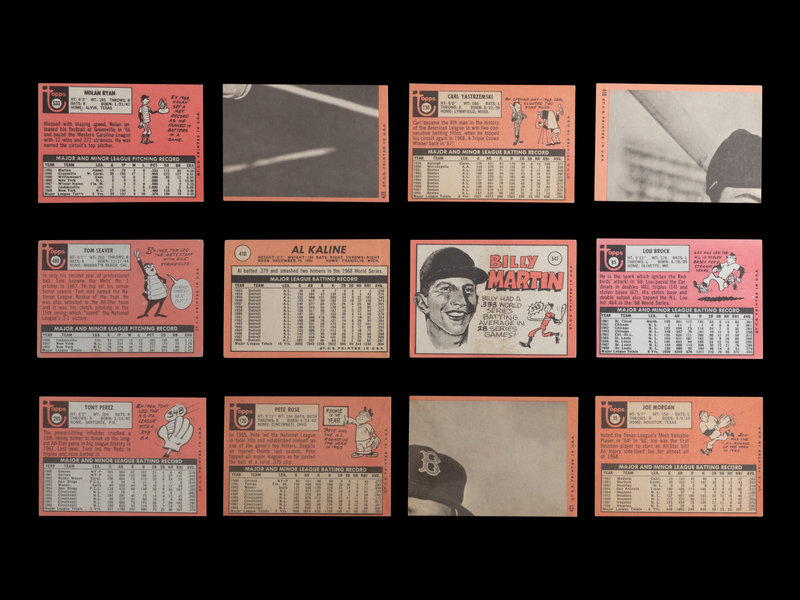 comprising Joe Morgan (No. 35), Lou Brock (No. 85), Pete Rose (No. 120), Carl Yastrzemski (No. 130), Tony Perez (No. 295), Al Kaline (No. 410), Willie McCovey All Star (No. 416), Brooks Robinson All Star (No. 421), Carl Yastrzemski All Star (No. 425), Tom Seaver (No. 480), Nolan Ryan (No. 533), Billy Martin (No. 547).