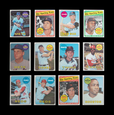 A Group of 12 1969 Topps Baseball Cards Featuring Multiple Hall of Famers and Notables (Including Nolan Ryan and Tom Seaver),