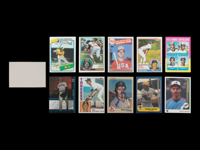 comprising of the following: 1975 Topps: Jim Rice (No. 616); 1980 Topps: Rickey Henderson (No. 482); 1983 Fleer: Wade Boggs (No. 179) Signed; 1983 Topps: Wade Boggs (No. 498); 1983 Topps: Tony Gwynn (No. 482); 1984 Topps: Don Mattingly (No. 8), Mark McGwire (No. 401); 1986 Fleer Update: Barry Bonds (No. U14); 1989 Upper Deck: Randy Johnson (No. 25); 1990 Topps: Sammy Sosa (Blank Front Error); 1994 Upper Deck SP Holoview: Alex Rodriguez (No. 33).