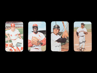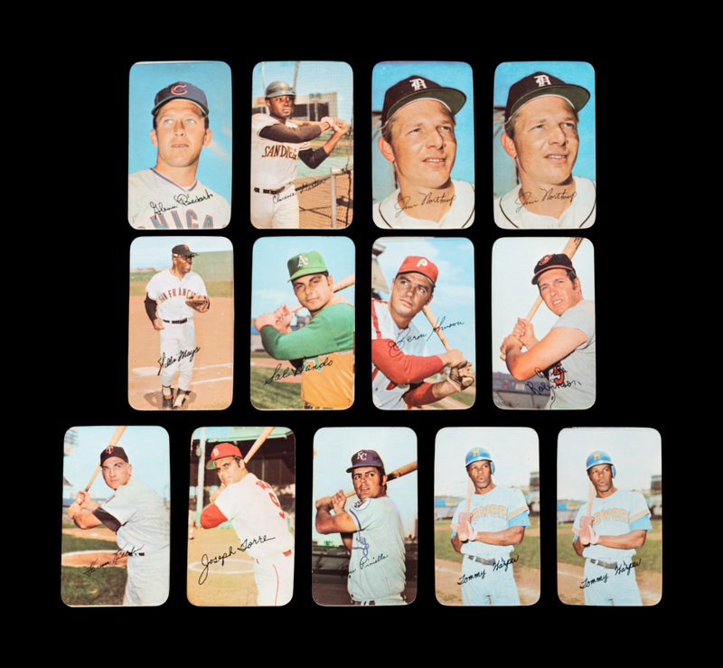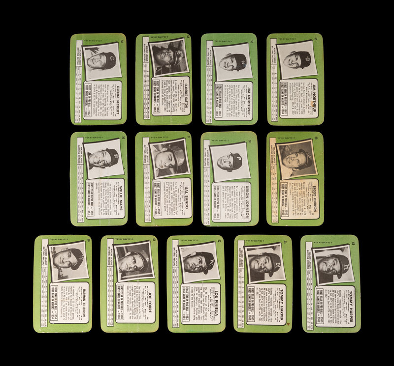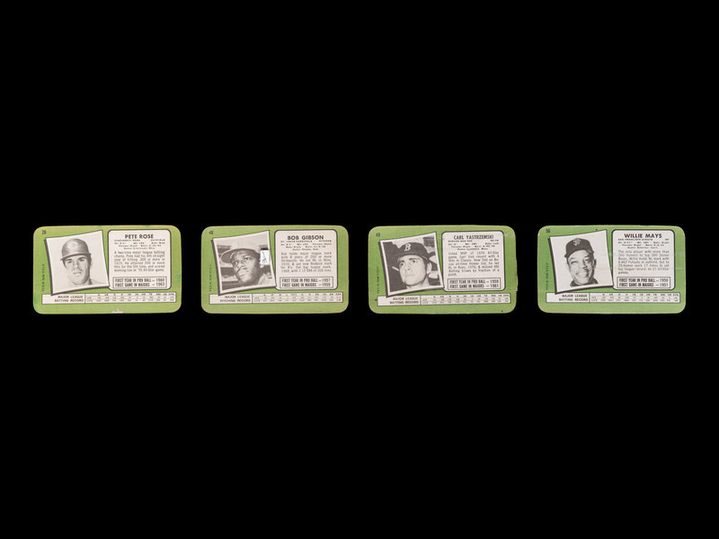 comprising 1970: Willie Stargell (No. 19), Reggie Jackson (No. 28), Bob Gibson (No. 33); 1971: Reggie Smith (No. 1), Gaylord Perry (No. 2), Ted Savage (No. 3), Donn Clendenon (No. 4), Boog Powell (No. 5), Dick Bosman (No. 7), Alex Johnson (No. 8), Bill Freehan (No. 12), Fritz Peterson (No. 13), Wes Parker (No. 14), Cesar Cedeno (No. 15), Sam McDowell (No. 16), Frank Howard (No. 17), Dave McNally (No. 18), Rico Petrocelli (No 19), Pete Rose (No. 20), Luke Walker (No. 21), Nate Colbert (No. 22), Luis Aparicio (No. 23), Jim Perry (No. 24), Lou Brock (No. 25), Roy White (No. 26), Claude Osteen (No. 27), Carl Morton (No. 28), Rico Party (No. 29), Larry Dierker (No. 30), Bert Campaneris (No. 31), Felix Millan (No. 33), Tim McCarver (No. 34), Tommie Agee (No. 36), Clyde Wright (No. 39), Dick Allen (No. 40), Curt Flood (No. 41), Amos Otis (No. 45), Bill Melton (No. 47), Bob Gibson (No. 48), Carl Yastrzemski (No. 49), Glenn Beckert (No. 50), Clarence Gaston (No 52), Jim Northrup x 2 (No. 55), Willie Mays (No. 56), Sal Bandon (No. 57), Deron Johnson (No. 58), Brooks Robinson (No. 59), Harmon Killebrew (No. 60), Joe Torre (No. 61), Lou Piniella (No. 62), Tommy Harper x 2 (No. 63).