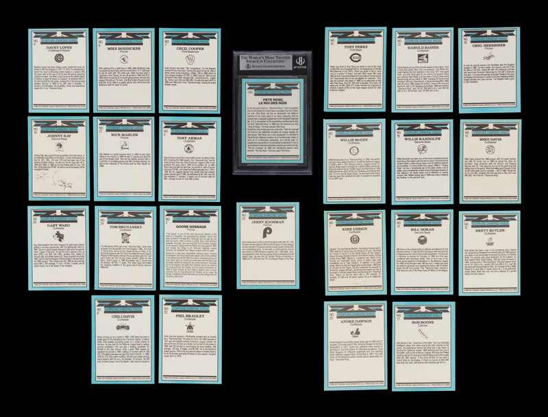 comprising Kirk Gibson (No. 1), Rich Goose Gossage (No. 2), Willie McGee (No. 3), Tony Armas (No. 5), Chili Davis (No. 6), Cecil Cooper (No. 7), Mike Boddicker (No. 8), Davey Lopes (No. 9), Bill Doran (No. 10), Brett Butler (No. 12), Harold Baines (No. 13), Mike Davis (No. 14), Tony Perez (No. 15), Willie Randolph (No. 16), Bob Boone (No. 17), Orel Hershiser (No. 18), Johnny Ray (No. 19), Gary Ward (No. 20), Rick Mahler (No. 21), Phil Bradley (No. 22), Jerry Koosman (No. 23), Tom Brunansky (No. 24), Andre Dawson (No. 25), Pete Rose (No. 260).