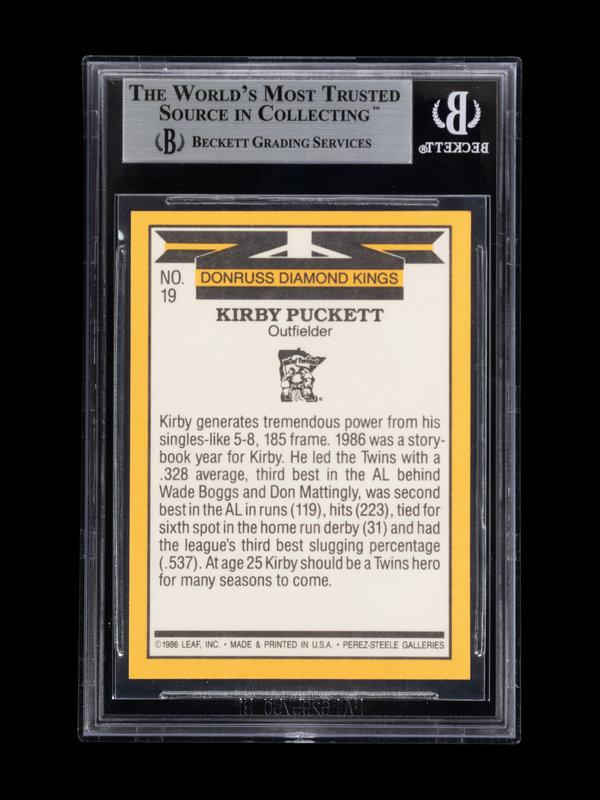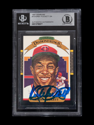 A 1987 Donruss Diamond Kings Kirby Puckett Signed Autograph Baseball Card No. 19 (Beckett Authentication Services BAS Certified)