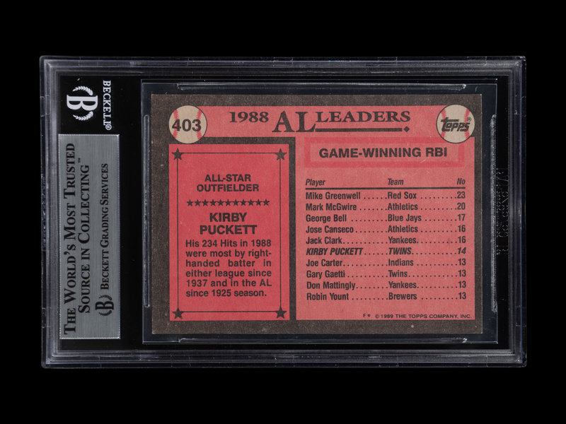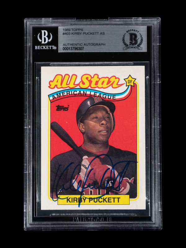 A 1989 Topps Kirby Puckett Signed Autograph Baseball Card No. 403 (Beckett Authentication Services BAS Certified)
