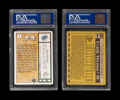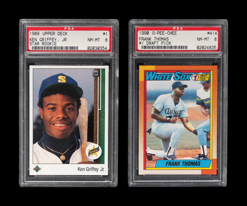 comprising 1989 Upper Deck Ken Griffey Jr. No. 1 (PSA 8 NM-MT); 1990 O-Pee-Chee Frank Thomas No. 414 (PSA 8).