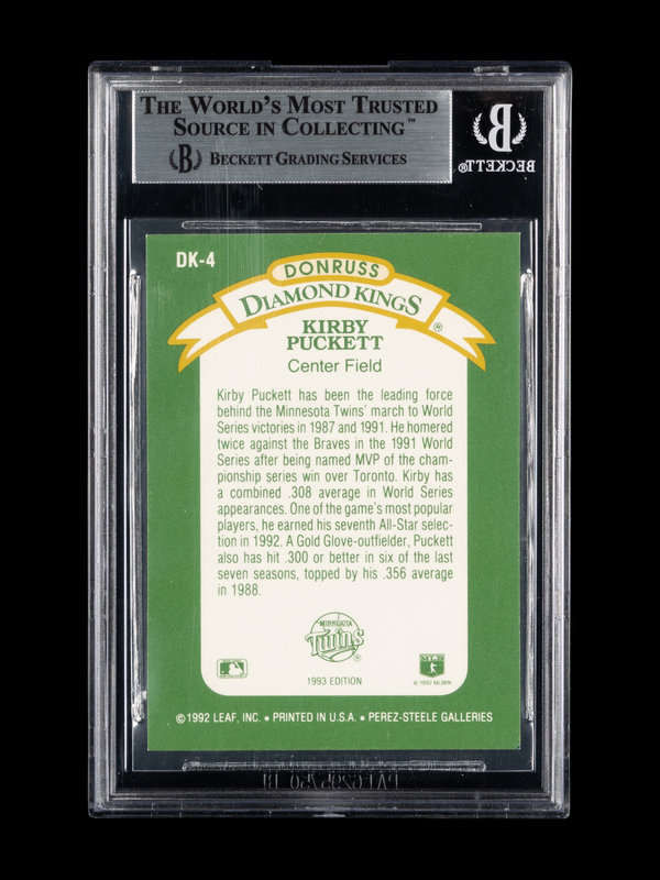 A 1993 Donruss Diamond Kings Kirby Puckett Signed Autograph Baseball Card No. DK-4 (Beckett Authentication Services BAS Certified)