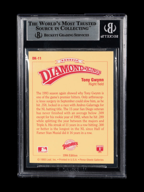 A 1994 Donruss Diamond Kings Tony Gwynn Signed Autograph Baseball Card No. DK-11 (Beckett Authentication Services BAS Certified)