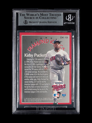 A 1995 Donruss Diamond Kings Kirby Puckett Signed Autograph Baseball Card No. DK-19 (Beckett Authentication Services BAS Certified)