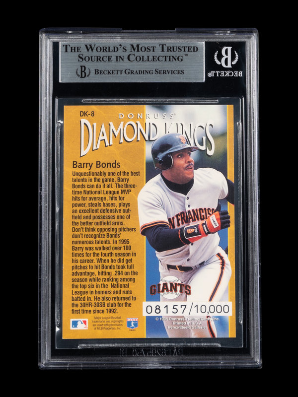 A 1996 Donruss Diamond Kings Barry Bonds Signed Autograph Baseball Card No. DK-8 (Beckett Authentication Services BAS Certified)