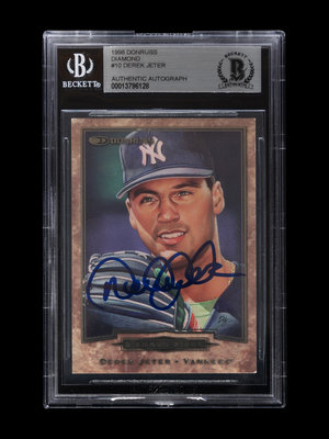 A 1998 Donruss Diamond Kings Derek Jeter Signed Autograph Baseball Card No. 10 (Beckett Authentication Services BAS Certified),