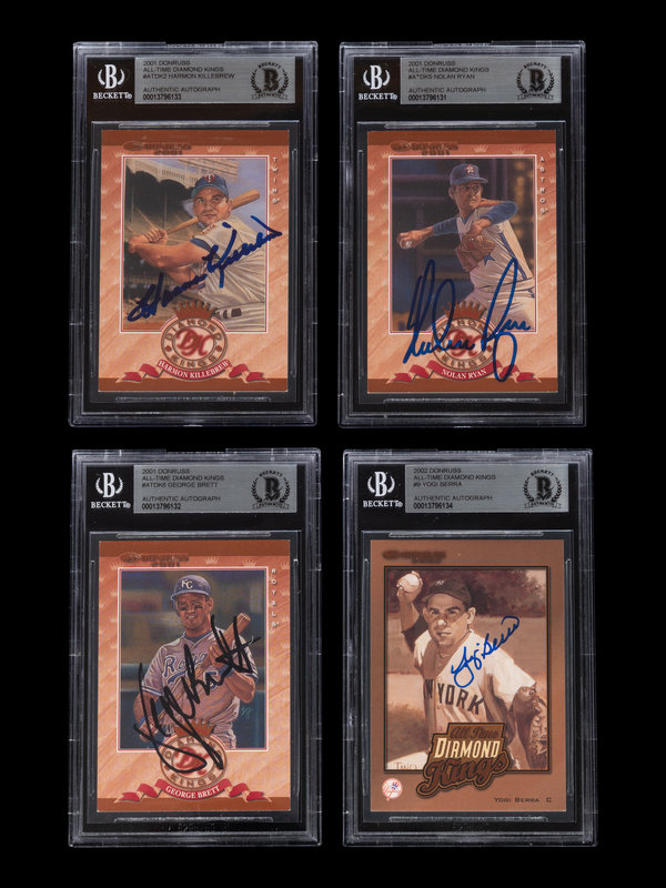A Group of Four Donruss All-Time Diamond Kings Hall of Fame Signed Autograph Baseball Cards (Beckett Authentication Services Certified),