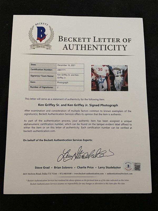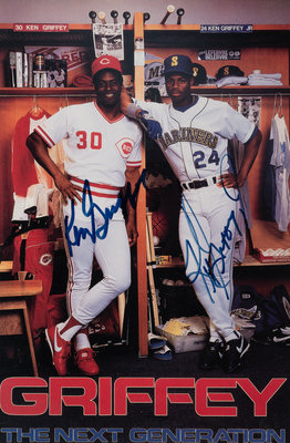 A Ken Griffey Jr. and Ken Griffey Sr. Signed Autograph Griffey The Next Generation Photograph With Period Signatures (Beckett Authentication Services Letter BAS Certified),