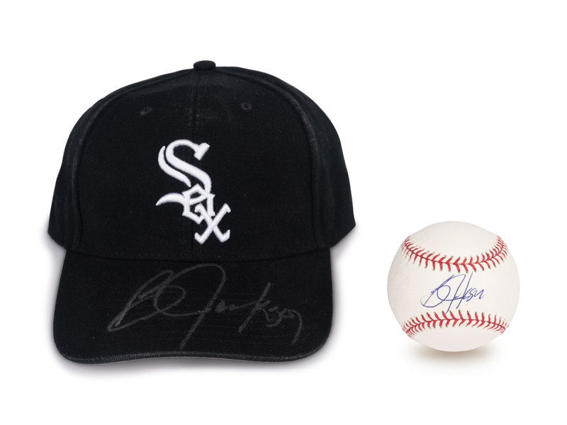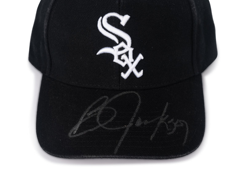 comprising a baseball inscribed "Bo Jackson" in blue ink and a Chicago White Sox hat inscribed "Bo Jackson in silver.