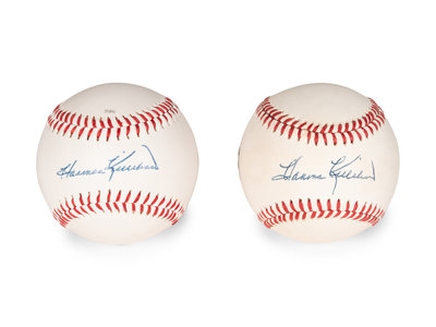 comprising two baseballs inscribed "Harmon Killebrew" in blue ink and one bat inscribed "Harmon Killebrew" in blue Sharpie.