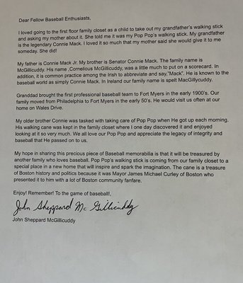 Accompanied by the following letter from Mack's grandson, John McGillicuddy: