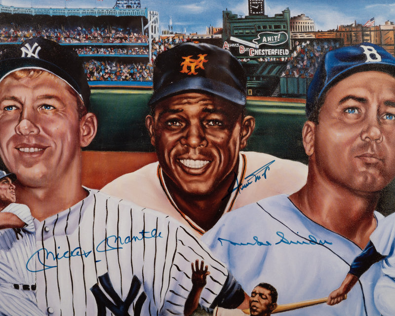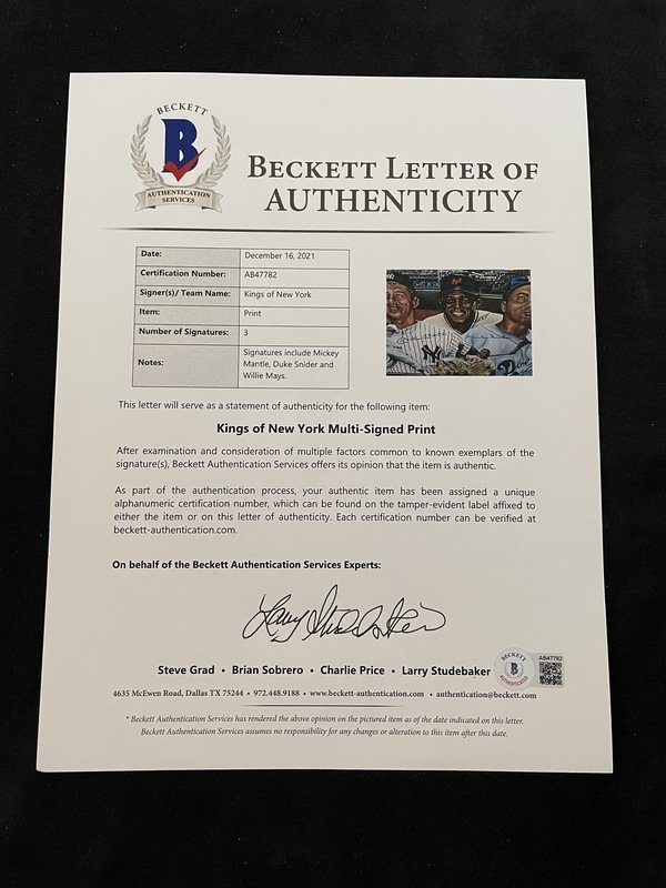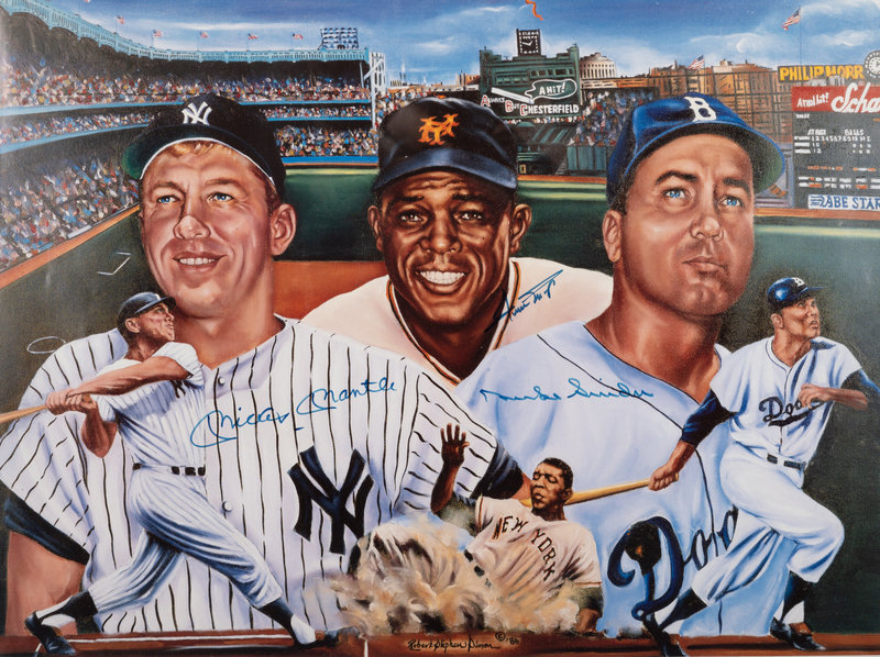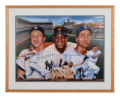 A Mickey Mantle, Willie Mays and Duke Snider "Kings of New York" Signed Autograph Robert Simon Limited Edition Print (Beckett Authentication Services Letter BAS Certified),