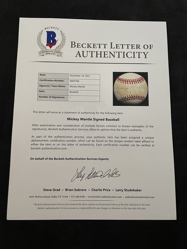 A Mickey Mantle Signed Autograph Baseball (Beckett Authentication Services Letter BAS Certified),