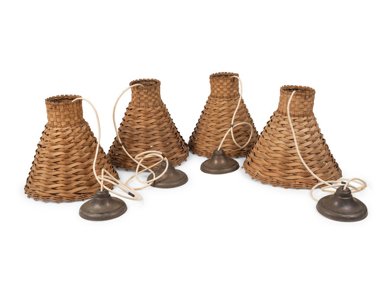 A Set of Four French Rattan Pendant Fixtures