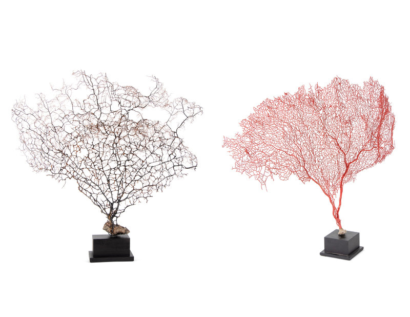 A Black Coral Branch Specimen and Red Coral Specimen